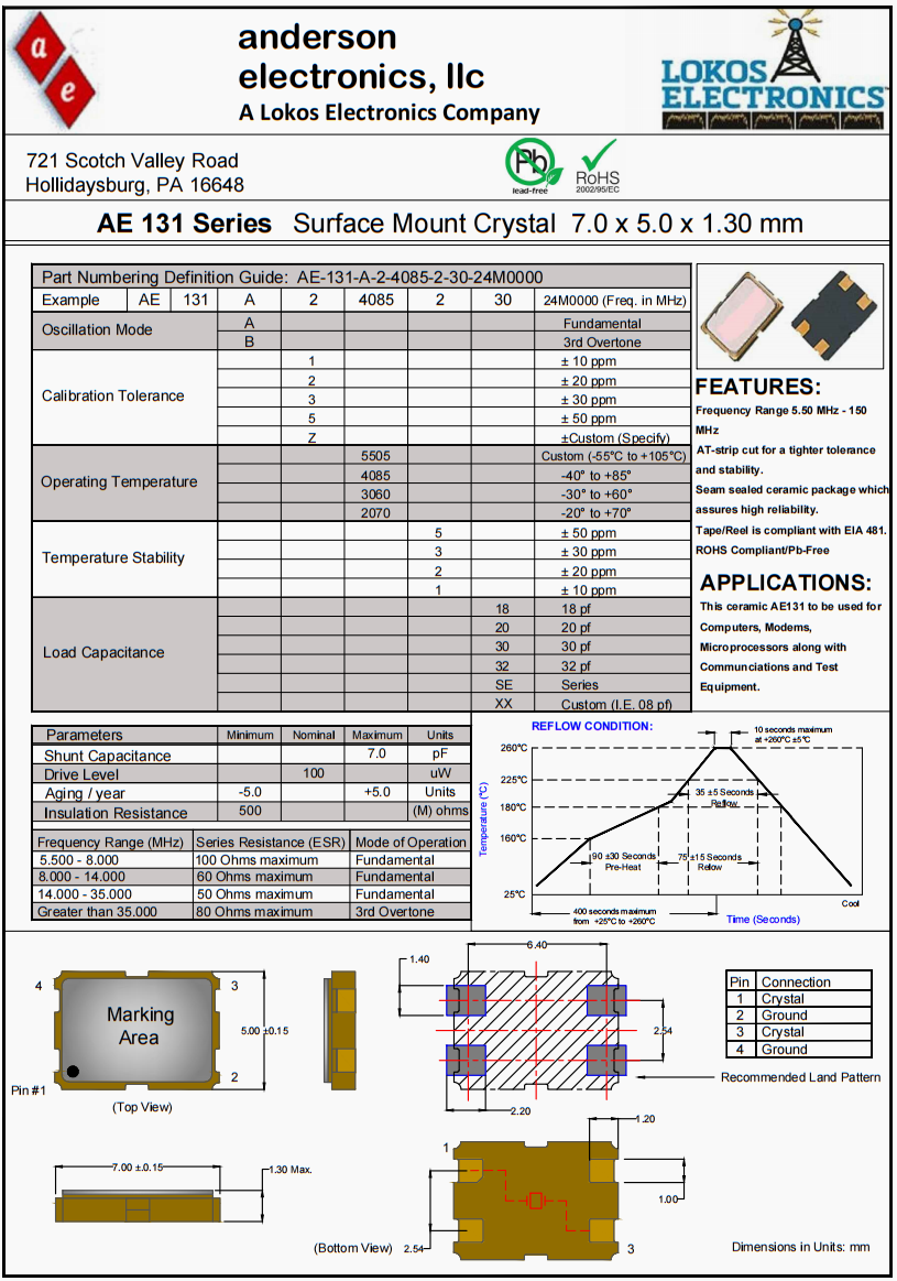 | 案例 | AE131 | A | 2 | 4085 | 2 | 30 | 20M0000 (Freq. in MHz) |