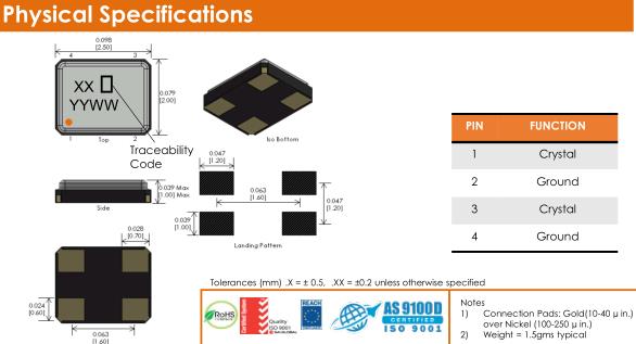 | Drive Level | Typical | 10 Typ, 100 Max | μW |