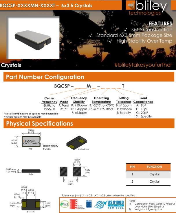 Bliley晶振,BQCSP晶振,BQCSP-26.000M-FBBFT晶振,貼片晶振本身體積小,超薄型石英晶體振蕩器,特別適用于有目前高速發(fā)展的高端電子數(shù)碼產(chǎn)品,因為晶振本身小型化需求的市場領(lǐng)域,小型,薄型是對應(yīng)陶瓷振蕩器(偏差大)和普通的石英晶體振蕩器(偏差小)的中間領(lǐng)域的一種性價比較出色的產(chǎn)品.產(chǎn)品廣泛用于筆記本電腦,無線電話,衛(wèi)星導(dǎo)航SSD,USB,Blu-ray等用途,符合無鉛焊接的高溫回流焊曲線特性.Bliley晶振公司發(fā)展歷史:
