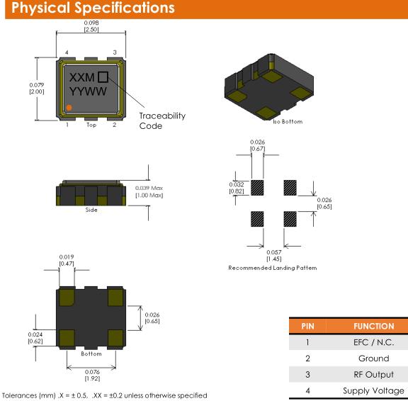 | Initial Frequency Tolerance 1 | Tested at +25ºC | ±2 | ppm | ||