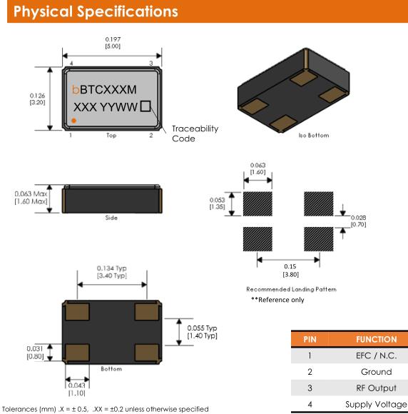 | Frequency Range | See options (min) | ±5, ±10 | ppm | ||