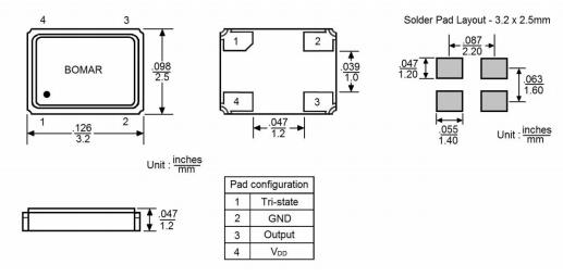 Bomar晶振,B1325-AABS3T-10.000000晶振,SMD晶體振蕩器