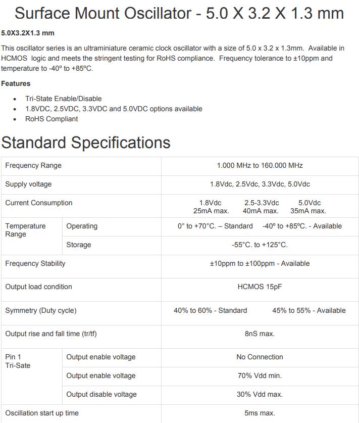 | Pin 1 Tri-Sate | Output enable voltage | No Connection |