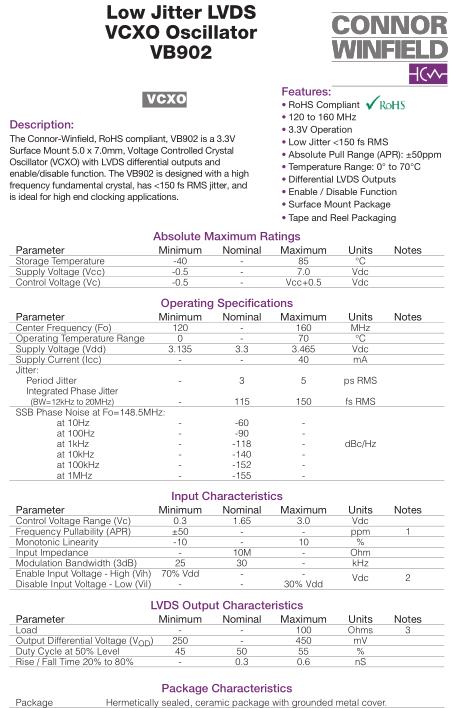 康納溫菲爾德晶振,VB902晶振,VB902-120.0M晶振,小型SMD有源晶振,從最初超大體積到現在的7050mm,6035mm,5032mm,3225mm,2520mm體積,有著翻天覆地的改變,體積的變小也使產品帶來了更高的穩定性能,接縫密封石英晶體振蕩器,精度高,覆蓋頻率范圍寬的特點,SMD高速自動安裝和高溫回流焊設計,Optionable待機輸出三態輸出功能,電源電壓范圍:1.8V~5V,高穩定性,低抖動,低功耗,主要應用領域:無線通訊,高端智能手機,平板筆記本WLAN,藍牙,數碼相機,DSL和其他IT產品的晶振應用,三態功能,PC和LCDM等高端數碼領域,符合RoHS/無鉛.