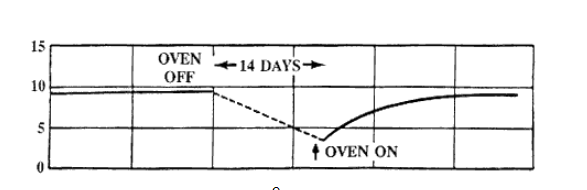 烤箱控制OCXO晶體振蕩器(OCXO)回歸示例.顯示在14天關閉后重新啟動振蕩器時,頻率比關閉前的頻率低約7x10-9,并且老化重啟后,費率顯著增加,在再次達到預關閉老化率之前大約一個月過去了,(圖中顯示了109中部分的Df/f與時間的關系)滯后是限制TCXO可實現穩定性的主要因素,在MCXO中尤其如此,因為原則上,如果f值與T特性可由單值函數描述,則MCXO中使用的數字補償方法能夠將f與T的變化補償為任意精度. 晶體振蕩器的f與T特性在溫度循環時并不完全重復,TCXO晶振缺乏可重復性,"熱滯后",如圖中所示.OCXO中缺乏可重復性,"回歸",如上圖所示,滯后定義為上升周期和上升周期之間的差異,下行周期f對T特性,并通過差值最大的溫度差值來量化,在指定的溫度極限之間的至少一個完整的準靜態溫度循環期間確定滯后,回歸定義為在特定條件下在振蕩器開關循環時固定溫度(通常是OCXO的烘箱溫度)下f與T特性的不可重復性.