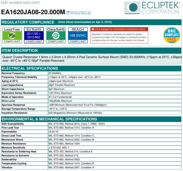 Ecliptek晶振已經實施了中國對危險物質(RoHS)的限制措施,以回應國際社會對鉛(鉛)和其他有害物質在電子部件和組件制造中所使用的有害物質的擔憂。Ecliptek晶振,EA1620JA08-20.000M晶振,無源晶振.