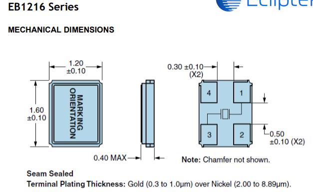 Ecliptek晶振EB1216,EB1216JA10-27.000M-TR音叉晶體 尺寸圖
