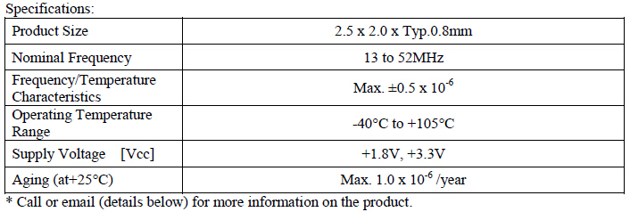 今年日本Dempa Kogyo有限公司.(NDK)開發(fā)了一種緊湊(2.5 x 2.0mm)高精度溫度補(bǔ)償晶體振蕩器(TCXO)操作溫度范圍為-40°C + 105°C.這款新振蕩器有更高的最高工作溫度+ 105°C而不是傳統(tǒng)+ 85°C,使它適合車載使用全球定位系統(tǒng)(GPS)和汽車通訊設(shè)備.審查現(xiàn)有的溫度補(bǔ)償電路和NDK的專有技術(shù)的應(yīng)用產(chǎn)生了高精度溫度特點(diǎn)±0.5×10-6寬溫度范圍-40°C + 105°C,NDK調(diào)查顯示完成這是一個(gè)世界第一的2.5 x 2.0 mm尺寸的溫補(bǔ)晶振.
