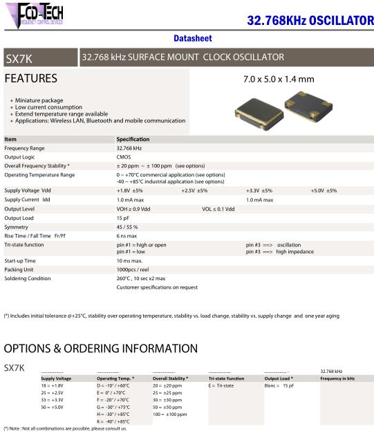 FCD-Tech晶振,SX7K晶振,SX7K-33G25E15-32.768kHz晶振