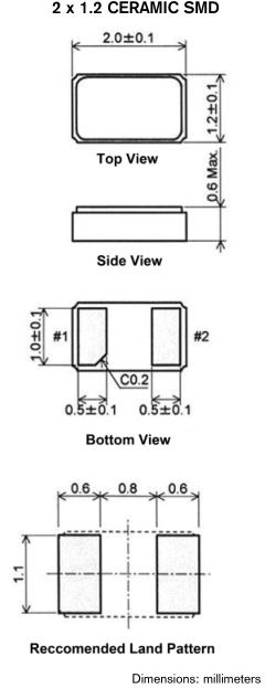| Frequency Tolerance | ±20 ppm or ±50 @ 25°C |
