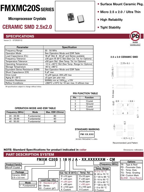 FMI晶振,FMXMC20S晶振,FMXMSC20S118HJA-12.000M-CM晶振