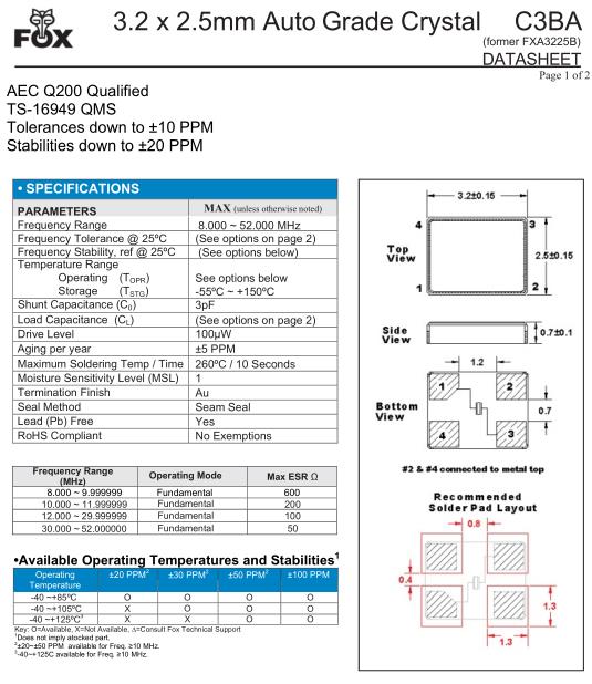 FOX晶振,C3BA晶振,FC3BABCVI40.0晶振