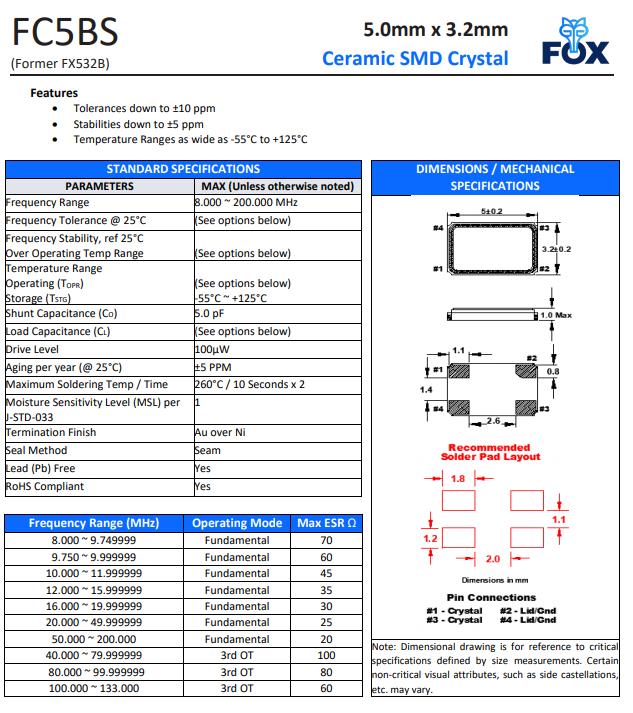 | FX532B-20.000 | FOX晶振 | FX532B | MHz Crystal | 20MHz | ±50ppm |