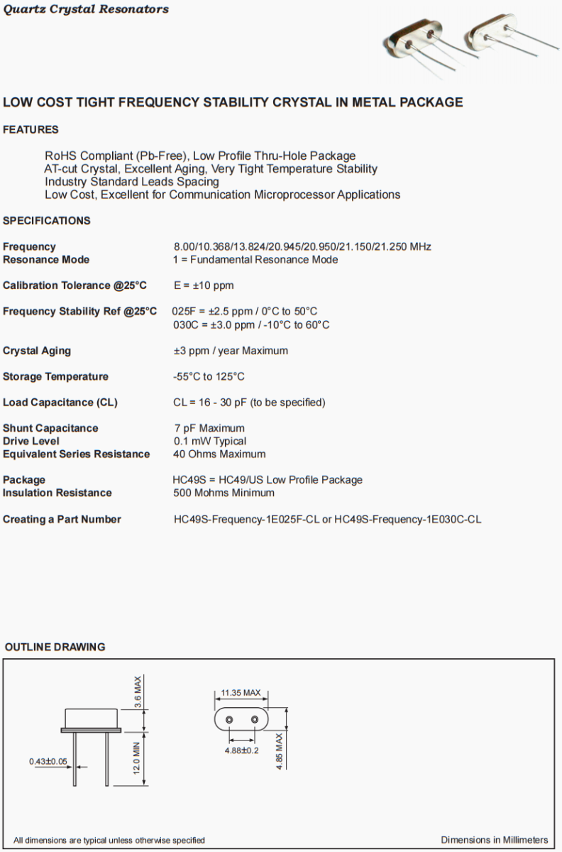 | 包裝 | HC49S = HC49/US Low Profile Package |