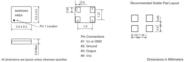 | Frequency Stability vs Vcc | ±0.2 ppm Maximum / Vcc ± 10% |