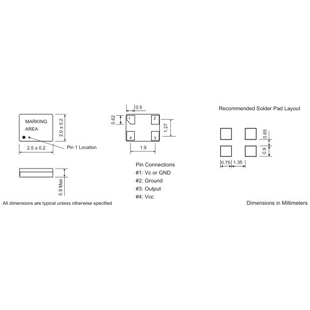 | Frequency Stability vs Temp. | 005 = ±0.5 ppm; 010 = ±1 ppm; 025 = ±2.5 ppm (not all combination is available) |