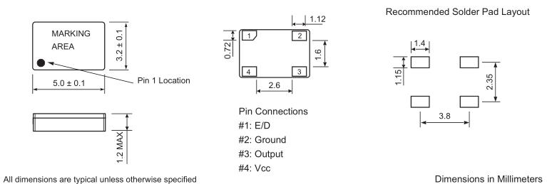 | Frequency Stability vs Temp. | 020 = ±2 ppm; 025 = ±2.5 ppm (not all combination is available) |