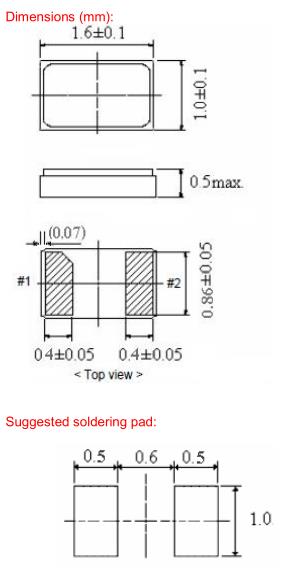 | 激勵功率 | DL | 0.5µW Max. | 推薦:1μW ~ 100μW | |