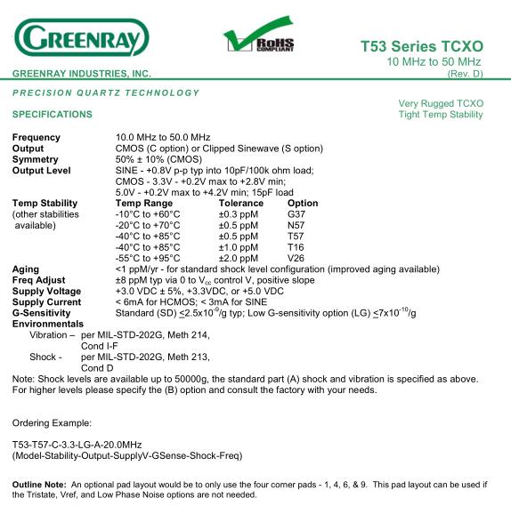 Greenray晶振,T53晶振,T53-T57-C-3.3-LG-A-20.0MHz晶振