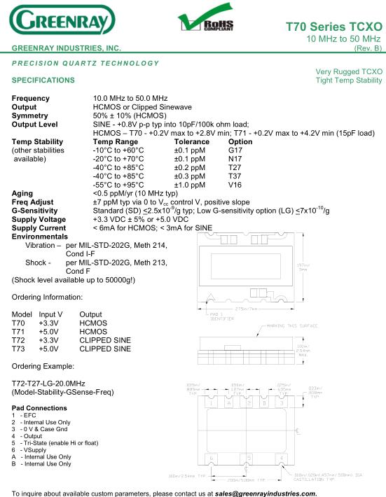 Greenray晶振集團為幾個主要市場提供石英晶振,貼片晶振,壓電石英晶體元器件、壓電石英晶體、有源晶體等頻率控制解決方案.在軍事市場上,我們為智能彈藥、導彈制導、移動接收器和雷達系統提供產品.格林雷晶振,T70晶振,T72-T27-LG-20.0MHz晶振.
