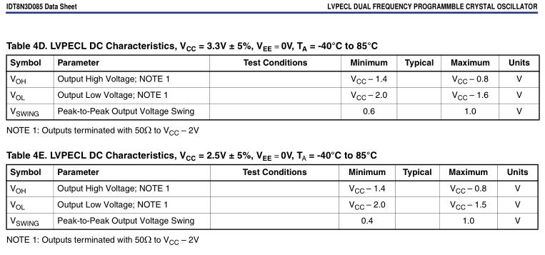 | 1電平電壓 | VOH | VCC-1.025~VCC-0.88V |