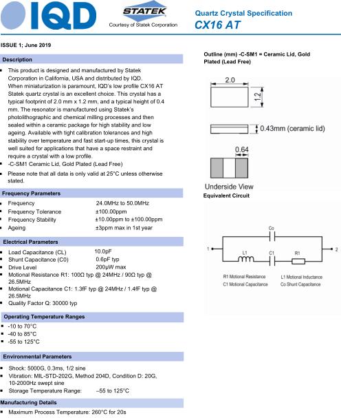 IQD晶振,CX16AT晶振,30.0MHz-CX16AT-C-SM1-100/100/晶振
