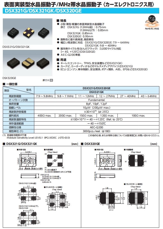 厚度DSX321G(超過12mhz): 0.75mm