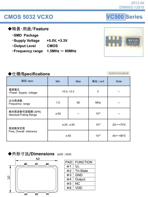 NAKA晶振,VC500晶振,VCXO晶振