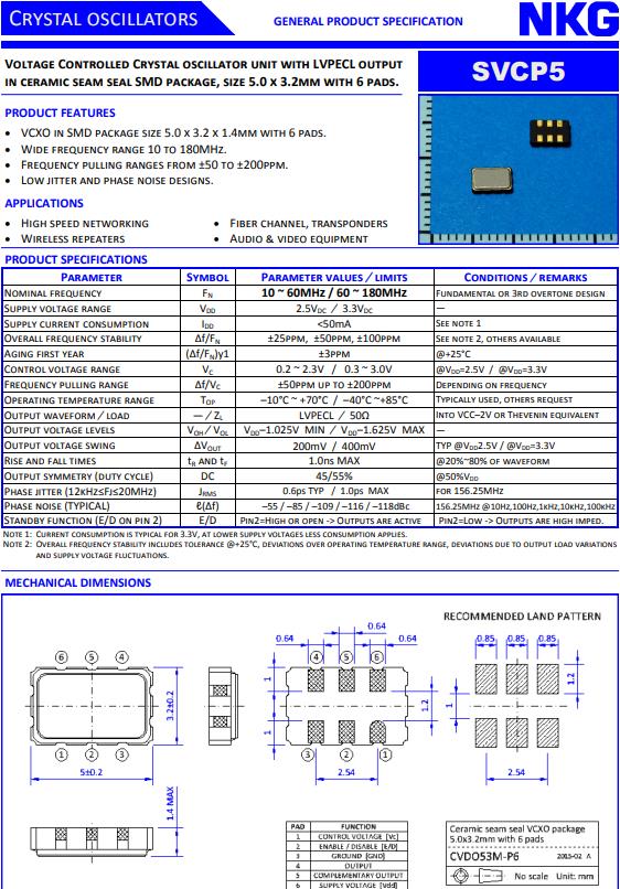 NJR晶振,SVCP5晶振,SVCP533B-20.000MT50A-EXT晶振,5032mm體積的石英晶體振蕩器,有源晶振,該產品可驅動2.5V的溫補晶振,壓控晶振,VC-TCXO晶體振蕩器產品,電源電壓的低電耗型,編帶包裝方式,可對應自動高速貼片機自動焊接,及IR回流焊接(無鉛對應),為無鉛產品,超小型,質地輕.產品被廣泛應用到集成電路,程控交換系統,無線發射基站.