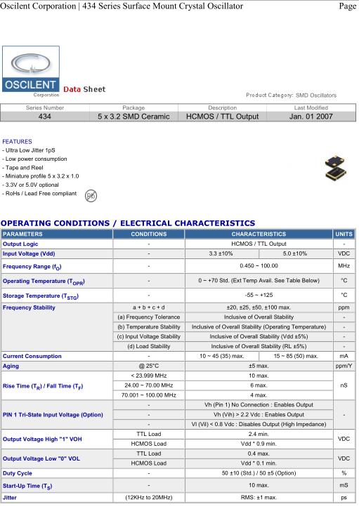 Oscilent晶振,434晶振,434-12.0M-3EN-TTS晶振