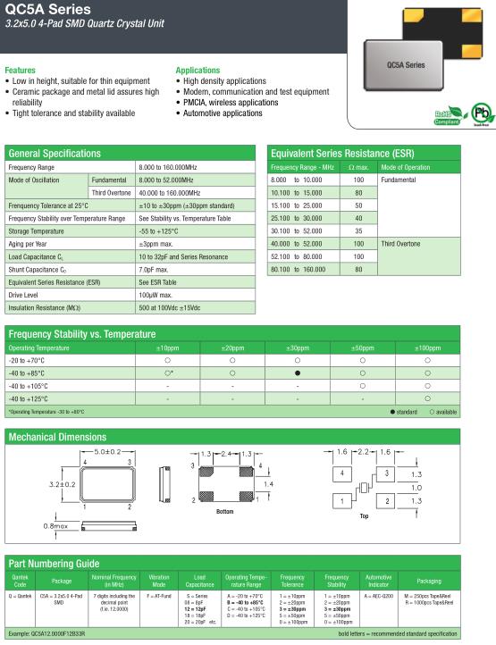 QANTEK晶振,QC5A晶振,QC5A12.0000F12B33R晶振