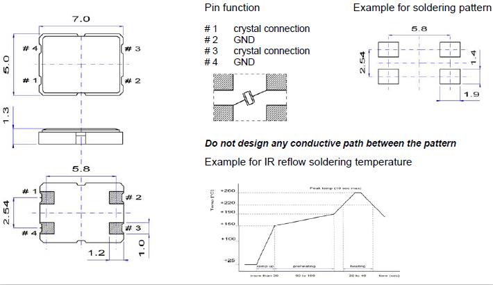 在一個不同擴張系數電路板(環氧玻璃)上焊接陶瓷封裝石英晶振時,在溫度長時間重復變化時可能導致端子焊接部分發生斷裂,請事先檢查焊接特性。QuartzCom晶振,SMX-1S晶振,SMD晶振.