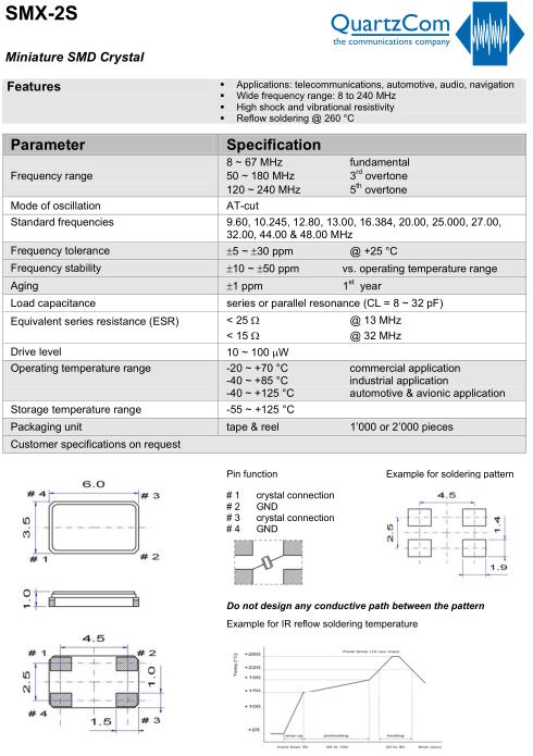 | QuartzCom晶振規(guī)格 | 單位 | SMX-2S晶振頻率范圍 | 石英晶振基本條件 |