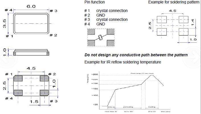 自動安裝時的沖擊:石英晶振自動安裝和真空化引發(fā)的沖擊會破壞SMD晶振產品特性并影響這些產品。請設置安裝條件以盡可能將沖擊降至最低,并確保在安裝前未對晶振特性產生影響。條件改變時,請重新檢查安裝條件。同時,在安裝前后,請確保石英晶振產品未撞擊機器或其他電路板等。