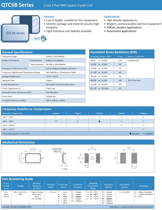 Quarztechnik晶振,QTC5B晶振,QTC5B12.0000FBT3I30R晶振