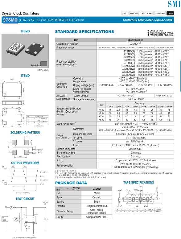 SMI晶振,97SMO晶振,7050mm有源晶振