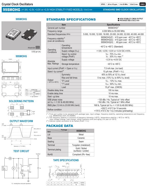 99SMOHG(F): ±15 ppm over -40゜C to +85゜C 99SMOHG(G): ±10 ppm over -40゜C to +85゜C 99SMOHG(H): ±8 ppm over -40゜C to +85゜C |