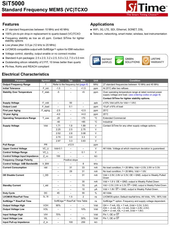 SiTime晶振,SiT5000晶振,SiT5000AC-3E-18VQ-16.000000T晶振