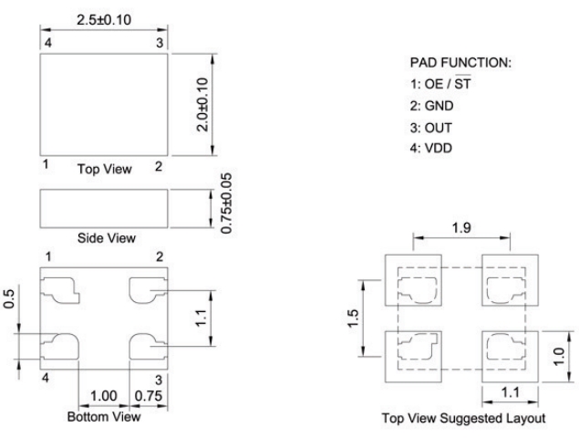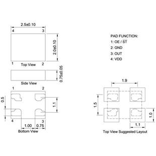 - 尺寸:2.5x2.0x0.75mm