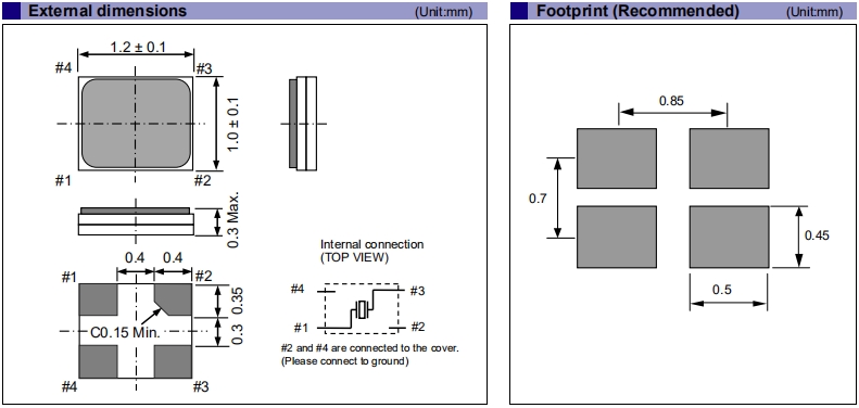 - 尺寸:1.2x1.0x0.3mm