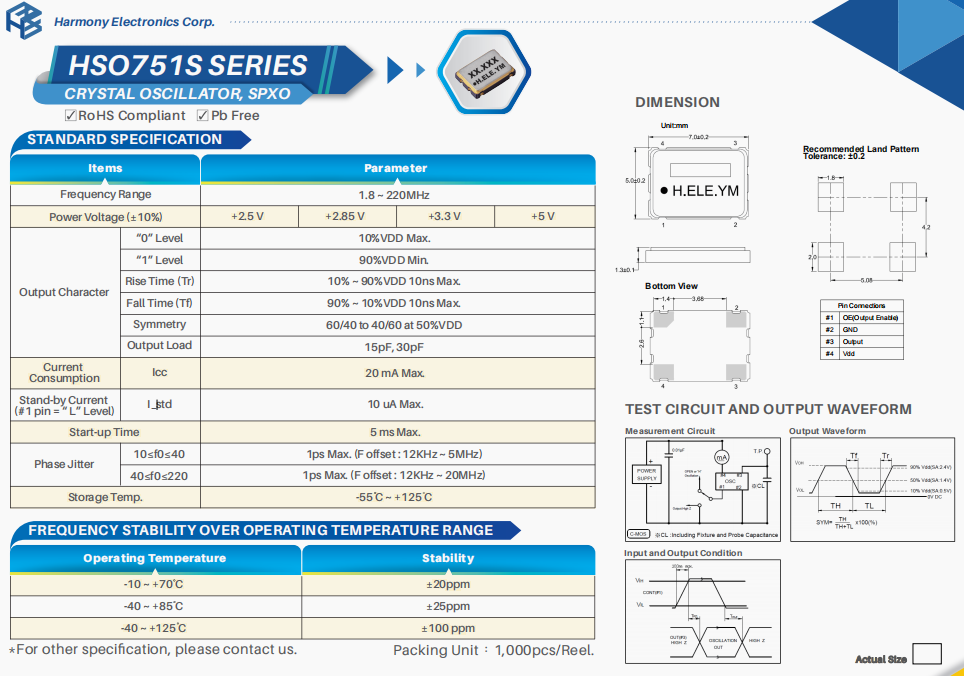| X1C026000B81H-V | 加高晶振 | HSX111SA | 26 MHz | ±20ppm | 8pF |