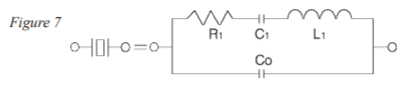 圖7所示的等效電路是一個電路在a點操作時石英晶體振蕩器石英晶體單元的描述自然共振頻率.Co或分流器電容,表示晶體的電容電極加上支架和引線的電容.R1、C1和L1構成了晶體的“運動臂”稱為運動參數.的運動電感(L1)表示振動質量晶體單元的.運動電容(C1)表示石英的彈性和電阻(R1)表示石英內部發生的體積損失.